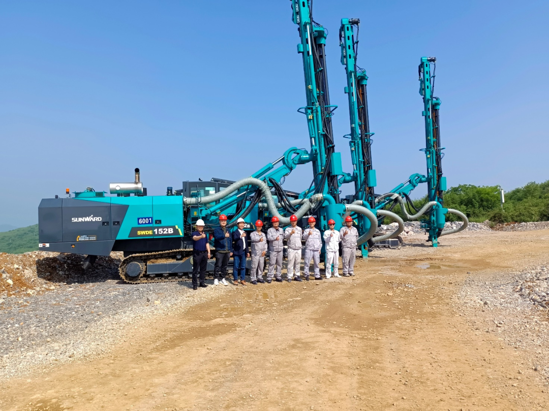 近日,山河智能一體式潛孔鉆機批量交付客戶,即將作為鉆爆孔鉆鑿的主力,服務于江西省九江市年產3000萬噸砂石骨料礦山開采項目。 此次產品交付...